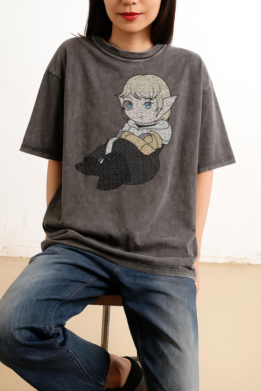 Embrace the adorable side of Eorzea with this **Chibi Papalymo FFXIV T-shirt**. Featuring a cute, fan-inspired graphic of the beloved Final Fantasy XIV character, this 100% heavyweight cotton acid wash tee is perfect for any MMORPG gamer or anime enthusiast. Its regular fit and unique finish make it a comfortable and stylish choice.