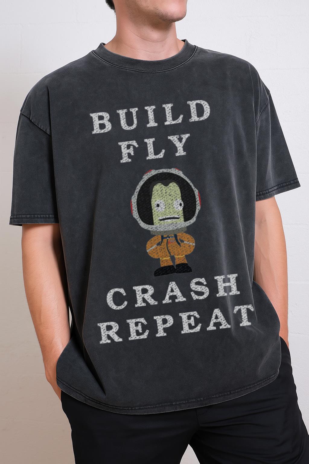 Launch into fun with this **Kerbal Space Program T-shirt**, celebrating the iconic phrase “Build Fly Crash Repeat.” This 100% heavyweight cotton acid wash tee is a must-have for any KSP enthusiast, featuring a unique graphic that captures the humorous spirit of the beloved space simulation game. Its regular fit ensures comfort for all your gaming adventures.