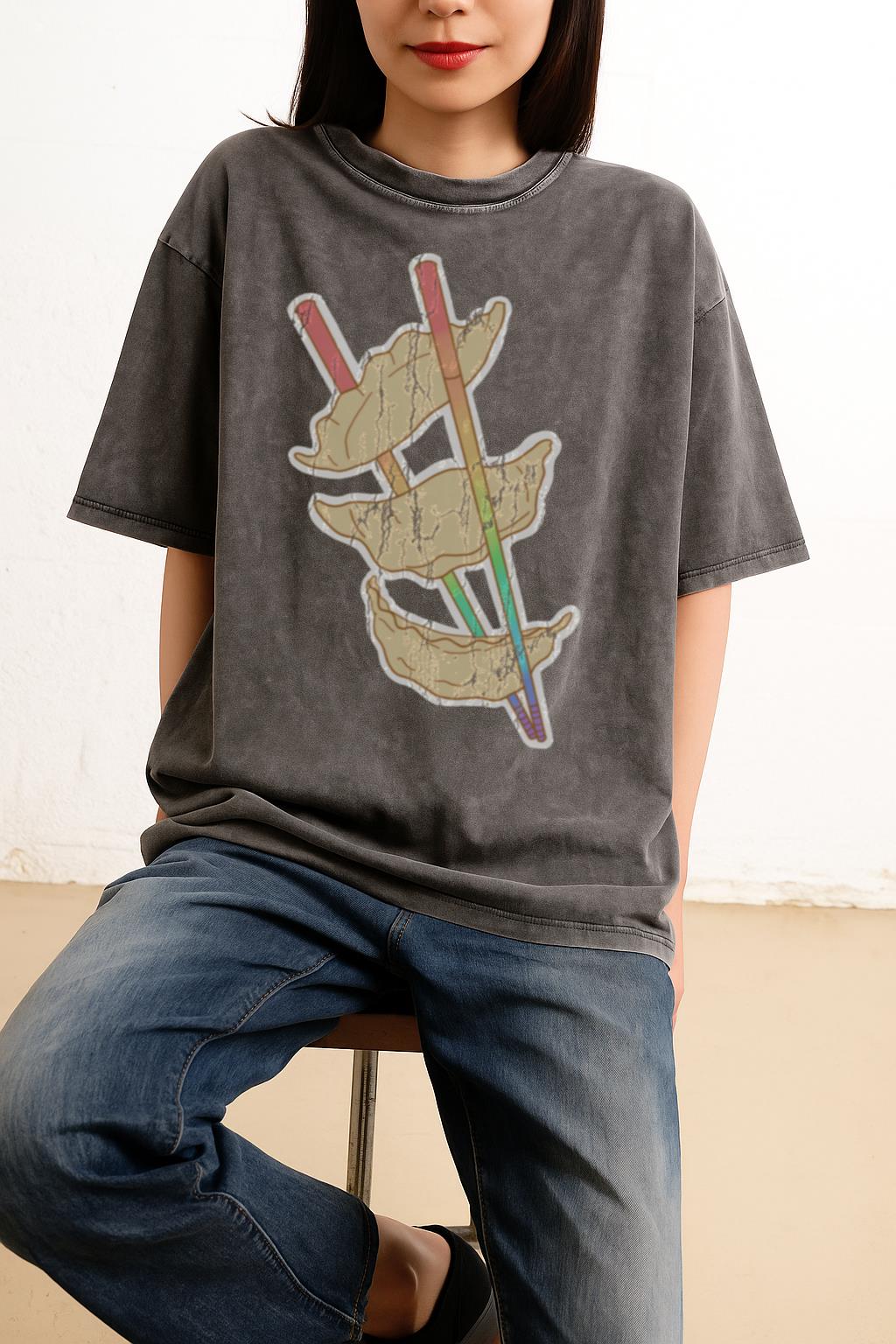 Serve up some pride with our vibrant **Queer Dumplings Rainbow T-shirt**! This unique graphic tee beautifully combines delicious dumplings with the iconic rainbow colors of the LGBTQ+ community, making a fun and inclusive statement. Crafted from soft 100% heavyweight cotton with a distinctive black acidwash finish, it’s perfect for Pride events, food festivals, or showing your support every day.